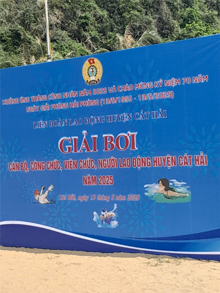 Hòa trong không khí thi đua sôi nổi của thành phố Hải Phòng hướng tới kỷ niệm 70 năm Ngày Giải phóng thành phố (13/5/1955 – 13/5/2025), sáng ngày 13/5/2025, Liên đoàn Lao động huyện Cát Hải đã tổ chức Giải bơi dành cho cán bộ, công chức, viên chức, lao động. Đây là hoạt động thiết thực chào mừng Tháng Công nhân năm 2025, góp phần đẩy mạnh phong trào thể dục thể thao, nâng cao sức khỏe, đời sống tinh thần cho người lao động trên địa bàn.