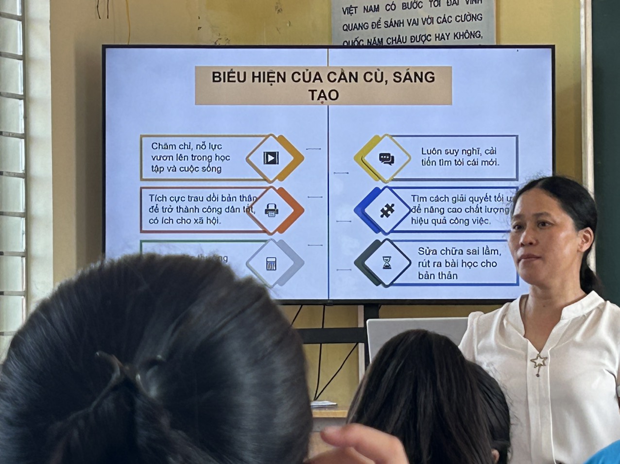 Ngày 22/10/2024, tổ chuyên môn THCS trường TH&THCS Văn Phong đã tổ chức lên lớp thể nghiệm chuyên đề: "Dạy học Chương trình GDPT 2018" qua tiết dạy bài “Lao động cần cù, sáng tạo” môn GDCD 8 với sự thể hiện của cô giáo Trần Thị Tâm Tình.