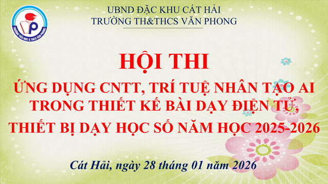 Thực hiện các văn bản chỉ đạo của Sở Giáo dục và Đào tạo Hải Phòng về nhiệm vụ năm học 2025–2026, đồng thời triển khai hiệu quả kế hoạch giáo dục và định hướng chuyển đổi số trong nhà trường, kế hoạch số 88/KH-TH&THCSVP ngày 28 tháng 11 năm 2025 của trường TH&THCS Văn Phong xây dựng và tổ chức Hội thi ứng dụng công nghệ thông tin, trí tuệ nhân tạo (AI) trong thiết kế bài dạy điện tử, thiết bị dạy học số năm học 2025–2026.