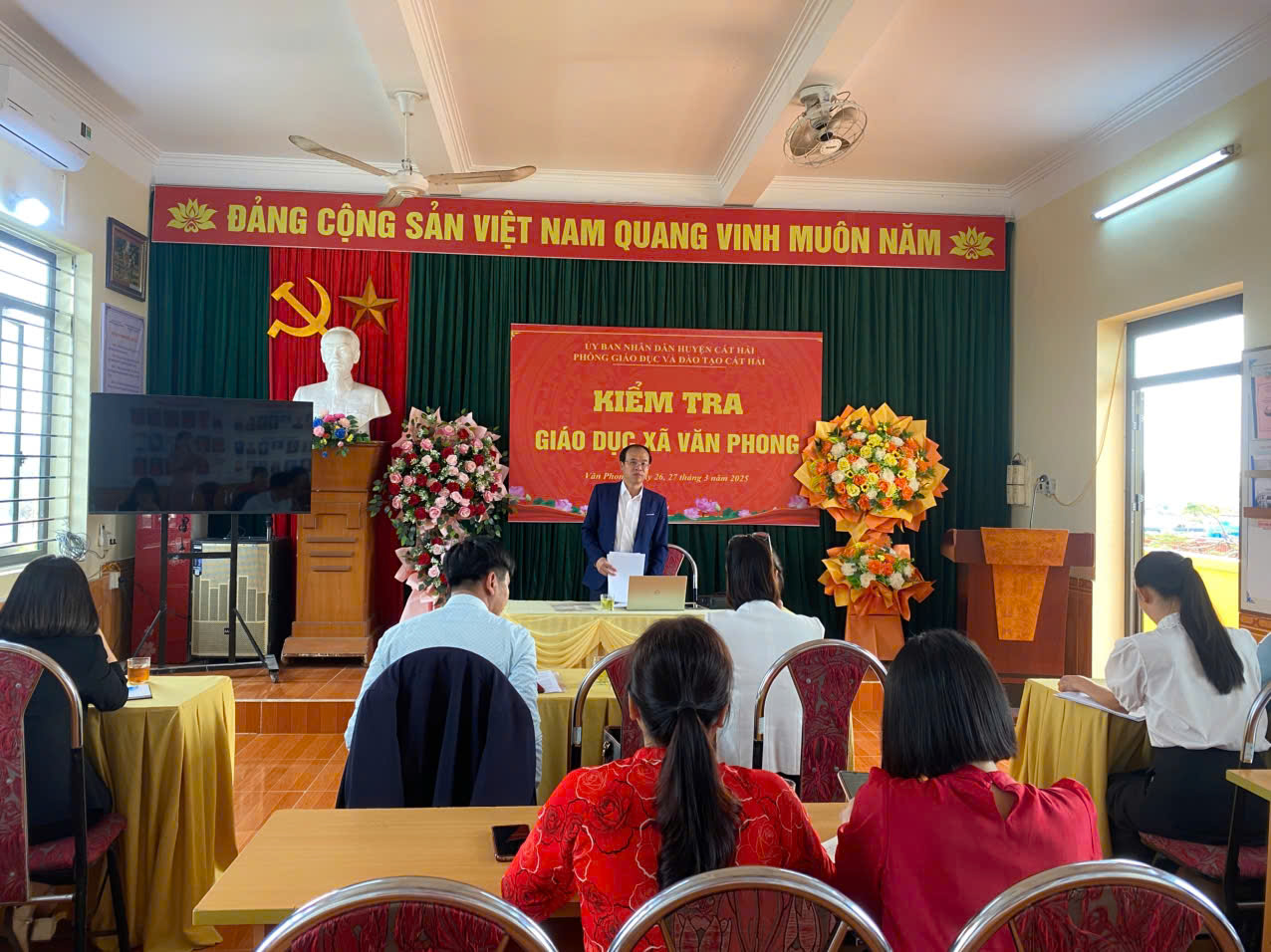 Thực hiện Kế hoạch số 29/KH-ĐKT ngày 21/3/2025, trong hai ngày 26+27/3/2025, trường TH&THCS Văn Phong đã đón đoàn kiểm tra của Phòng Giáo dục và Đào tạo Cát Hải về kiểm tra các điều kiện cơ sở vật chất đảm bảo chất lượng giáo dục và công tác quản lý tài chính; việc thực hiện nhiệm vụ giáo dục; việc thực hiện quy chế tổ chức và hoạt động của các cơ sở giáo dục trên địa bàn xã Văn Phong.