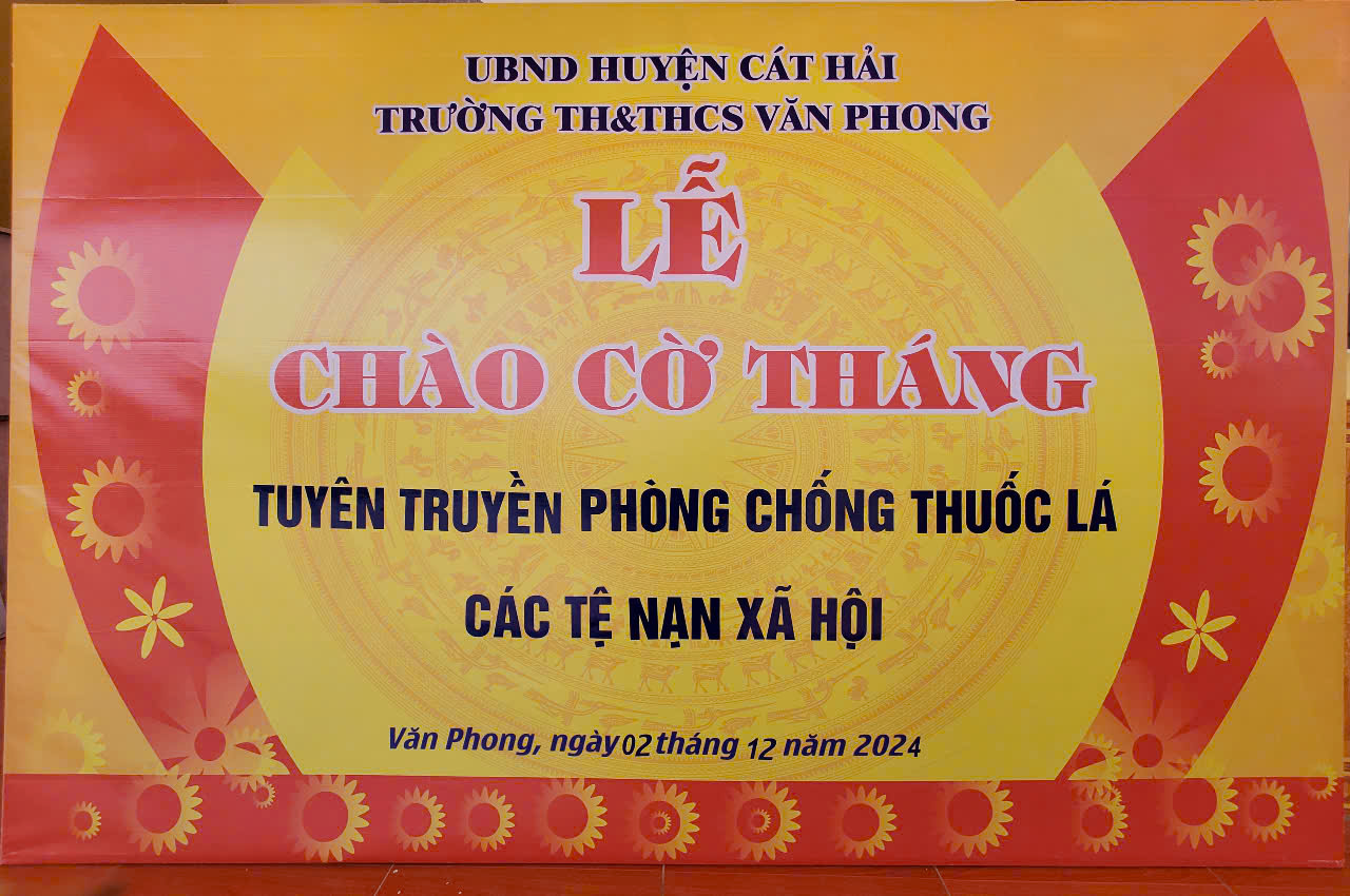 Nhằm hướng tới kỷ niệm 80 năm ngày Quân đội nhân dân Việt Nam 22/12, đồng thời nhằm nâng cao ý thức tránh xa thuốc lá và các tệ nạn xã hội, sáng thứ 2 ngày 02/12/2024 trường TH&THCS Văn Phong đã tổ chức lễ chào cờ tháng 12.