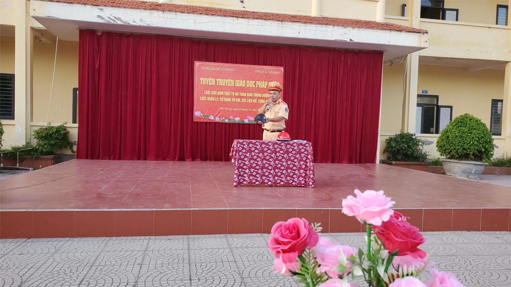 Thực hiện đợt cao điểm bảo đảm an toàn trật tự an toàn giao thông cho lứa tuổi học sinh, chiều ngày 25/10/2024, Trường TH&THCS Văn Phong đã phối kết hợp với Công an xã Văn Phong tổ chức tuyên truyền giáo dục pháp luật về Luật bảo đảm trật tự an toàn giao thông đường bộ, Luật quản lý, sử dụng vũ khí, vật liệu nổ, công cụ hỗ trợ cho học sinh nhà trường.