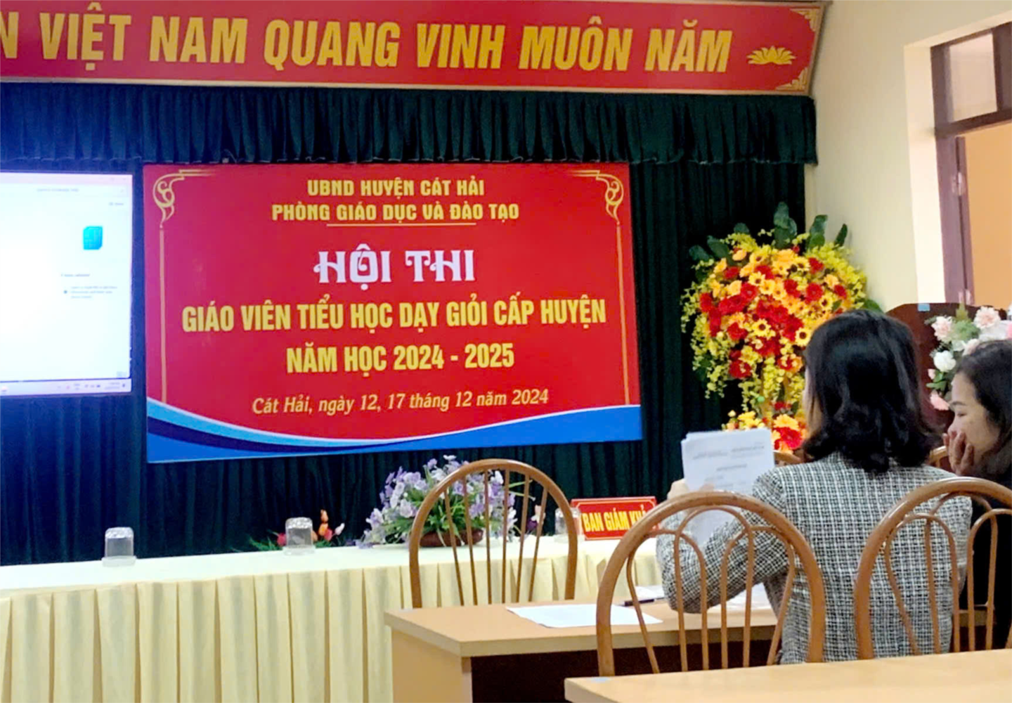 Thực hiện Kế hoạch số 99/KH-PGD&ĐT ngày 05/11/2024 của Phòng Giáo dục và Đào tạo Cát Hải về việc tổ chức Hội thi giáo viên tiểu học dạy giỏi cấp huyện, năm học 2024-2025. Hôm nay, ngày 12 tháng 12 năm 2024, Hội thi đã diễn ra với phần thi thứ nhất: Thuyết trình biện pháp nâng cao chất lượng giảng dạy.